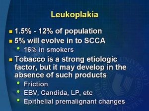 Sometimes a white or gray patch can develop on the tongue, the floor of a mouth, or on the inside of a cheek. This is called Leukoplakia and is typically the mouth’s reaction to irritation of mucous membranes. Leukoplakia can surface at any time; however, it is more common in senior citizens.